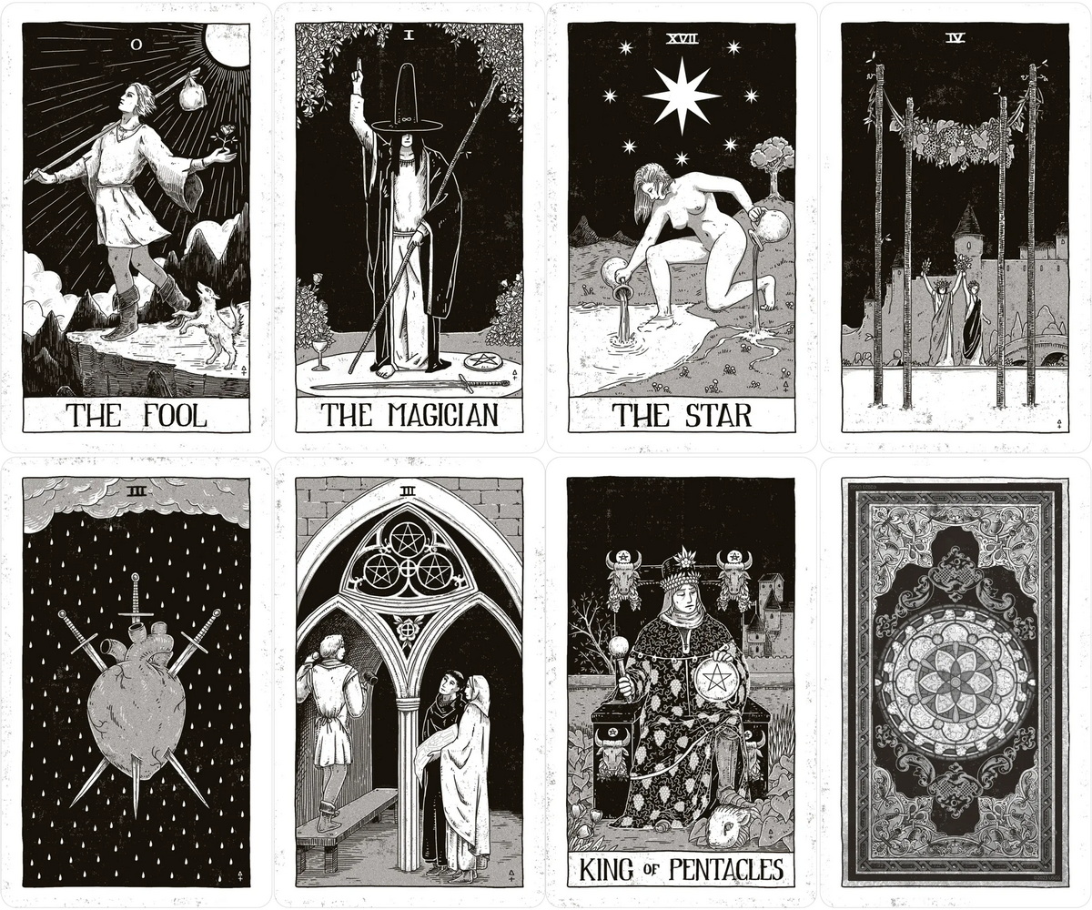 本產品需要付全數訂金訂貨,一般需時約 3-4 星期到貨。Using only black ink, the Black Ritual Tarot invites us to explore the depths of the psyche. Adam Zonca’s highly detailed illustrations offer a monochromatic perspective on the enduring Rider-Waite archetypes and symbols. This black and white deck was created to offer focused readings that cast light on the dark and light aspects within our journey and ourselves. Includes 78 cards and 56-page booklet with card meanings and keywords.