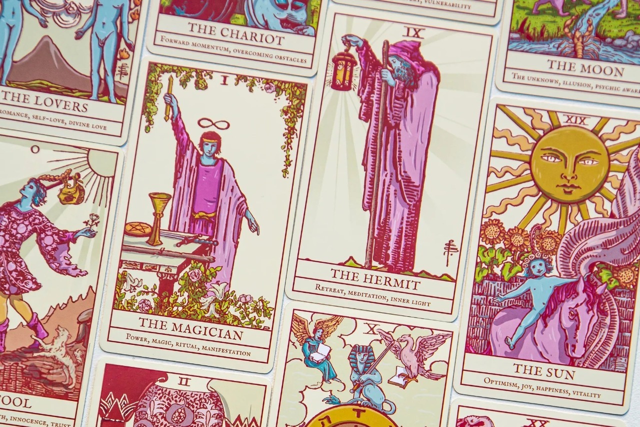 Cute colours and a modern take on the traditional Rider-Waite-Smith tarot make this fabulous deck stand out. Unlike standard tarot decks, this one includes the meanings on the cards, creating an easy-to-use introduction to tarot reading—no booklet needed to start with, but one is included to develop your practice.