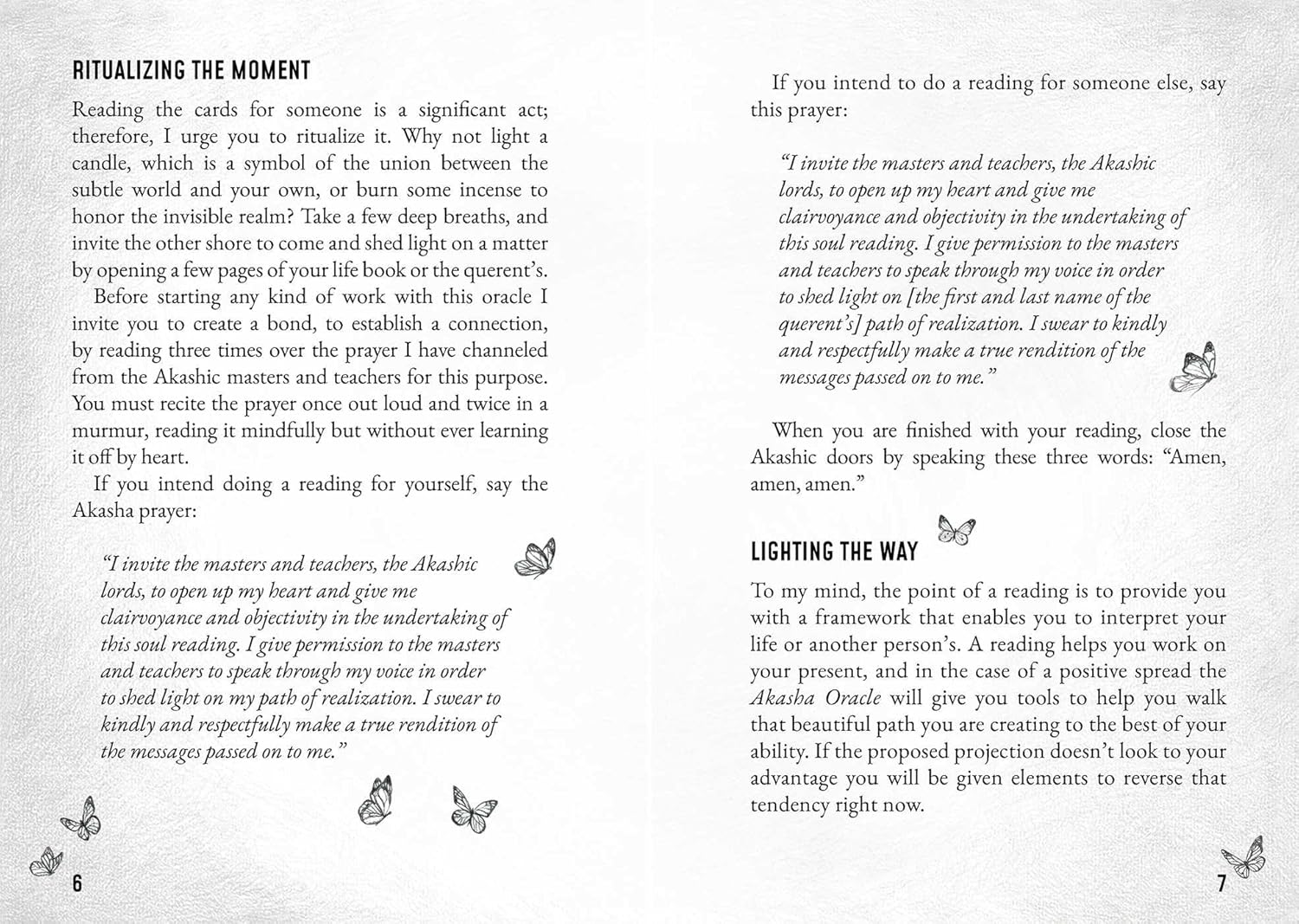 The Akashic Records, a universal library containing all the memories of humanity, including each soul's individual journey, have been known and explored by many civilizations throughout history. When we access the Records, the Masters and Teachers deliver what we need to know to evolve positively in our current incarnation.Included are 48 beautifully illustrated cards, a guidebook and two divining boards. These elements will provide you with keys to help you understand the nature of your personal blocks, obtain precise and dated information on your past lives, discover your life purpose and the potentialities you are called to develop, or even just undertake a more traditional divinatory reading.