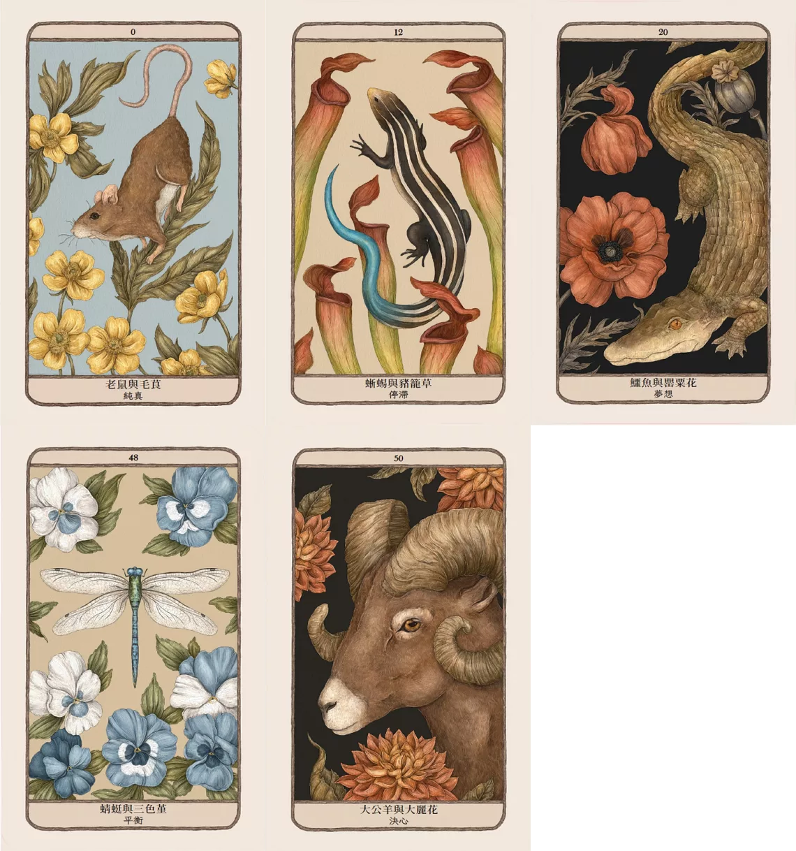 藝術家潔西卡.魯,以獨特的古典維多利亞風格插畫,和細膩入微的巧思,呈現出森林守護者們豐沛的智慧與生命力,牌面上還暗藏許多隱含象徵的細節,值得你細細品味。