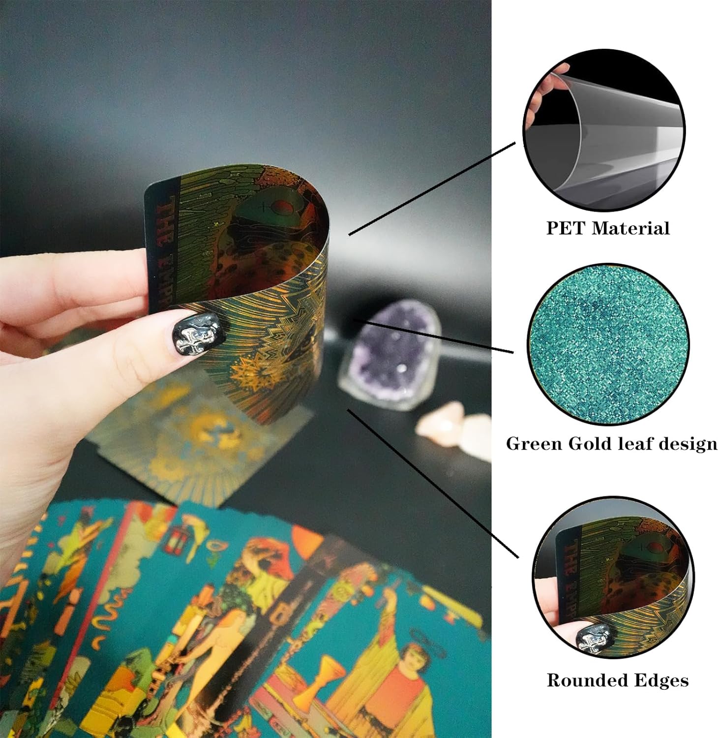 這副塔羅牌以獨特而華麗的設計為特色,每張牌皆採用金箔工藝製作,展現出奢華高端的質感與收藏價值,全息鍍金的效果更讓牌面閃耀奪目,在占卜時能幫助集中注意力,帶來煥然一新的閱讀體驗。卡牌材質選用優質的 PET 塑料,既堅固耐用又防水,不僅能長時間使用而不易損壞,手感順滑,洗牌也格外方便。牌面插畫大膽且清晰,結合附帶的詳細指南,使初學者也能輕鬆理解與掌握塔羅的使用方法。這副卡牌不僅適合自我探索、靈性成長與占卜實踐,更是一份兼具美觀與實用價值的禮物,無論是送給遊戲愛好者還是塔羅愛好者,都適合在生日、紀念日、聖誕節、新年、感恩節等各種場合贈送。此外,每副牌都附有中英文雙語說明書,更方便不同語言的使用者學習與上手,讓這副塔羅牌能夠觸及更廣泛的讀者群體。