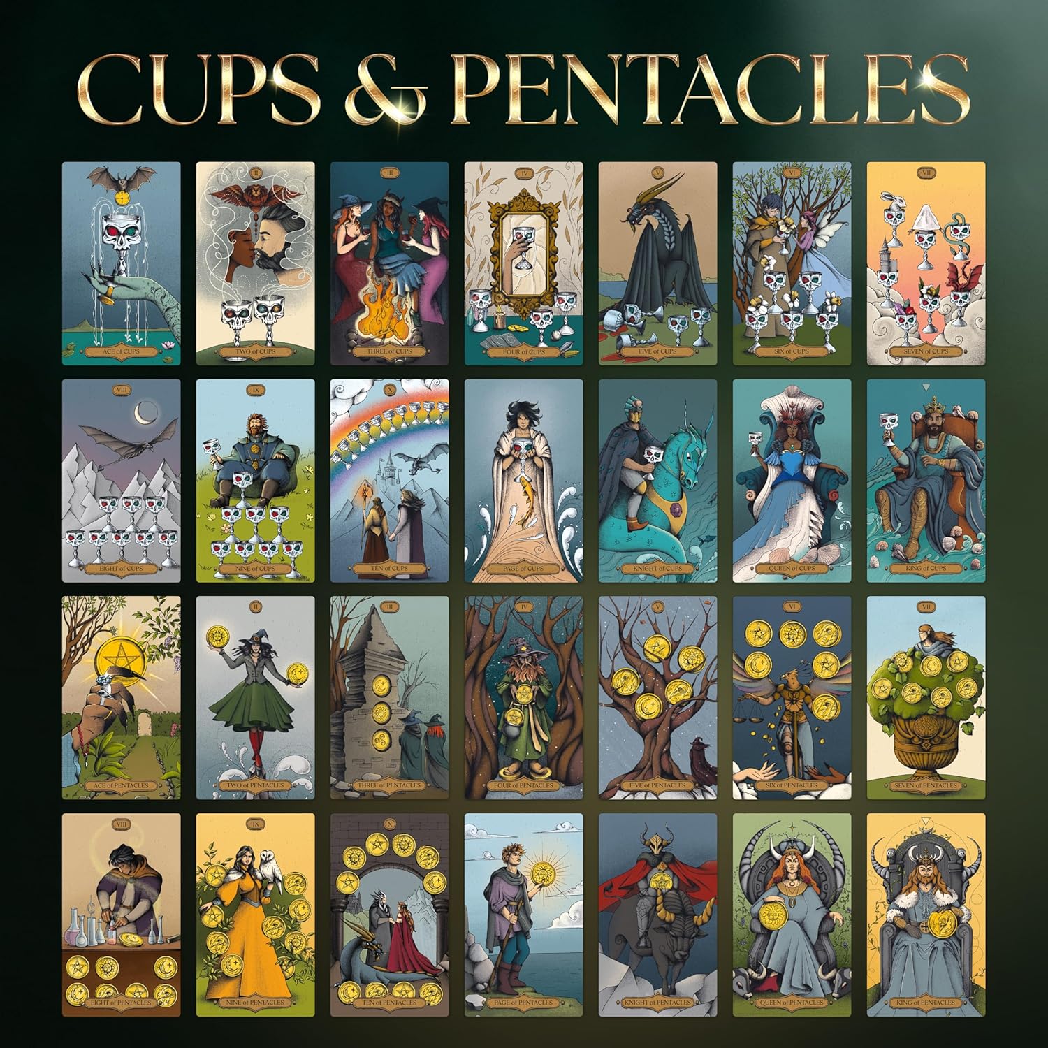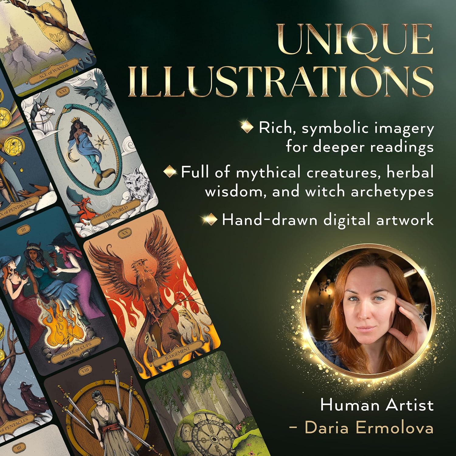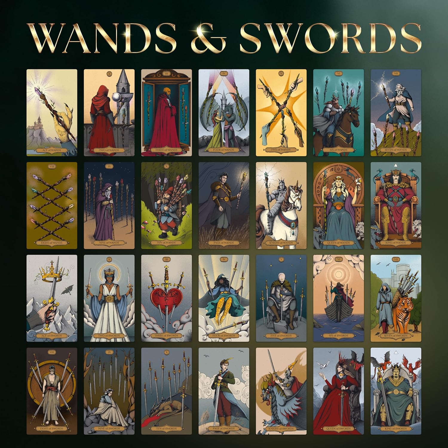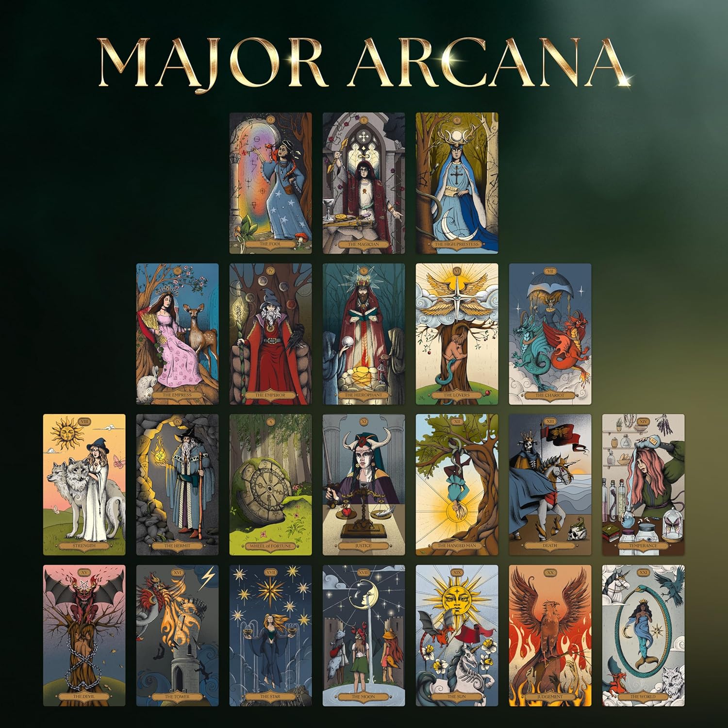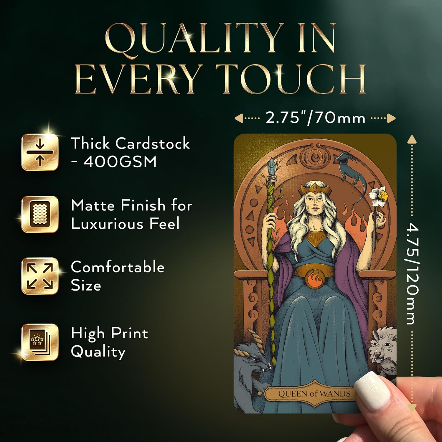 Enhanced Durability: Our beautiful tarot deck crafted with high-quality materials, including thick 400 gsm cardstock, a matte finish, and a durable, compact carrying box that prevents bending and sticking of tarot deck cards
