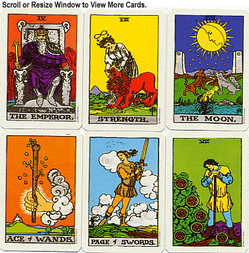 Pamela Colman Smith's artwork was pumped up with vibrant colors by Frankie Albano. The deck was originally published in 1968 and went out of print just a few years later. There was sufficient demand for this deck so U.S. Games Systems re-issued a facsimile deck from the original in 1991 and it has remained a staple for tarot collectors since. The colors are bright with lots of purples and greens, which help readers focus on details they might have otherwise missed. The background of the Minor Arcana are color-coded. The Cups feature light blue-green, the Wands are orange, the Pentacles lime green, and the Swords yellow. This is a vivid deck that appeals to those nostalgic for the psychedelic sixties or who appreciate the "wow" factor.