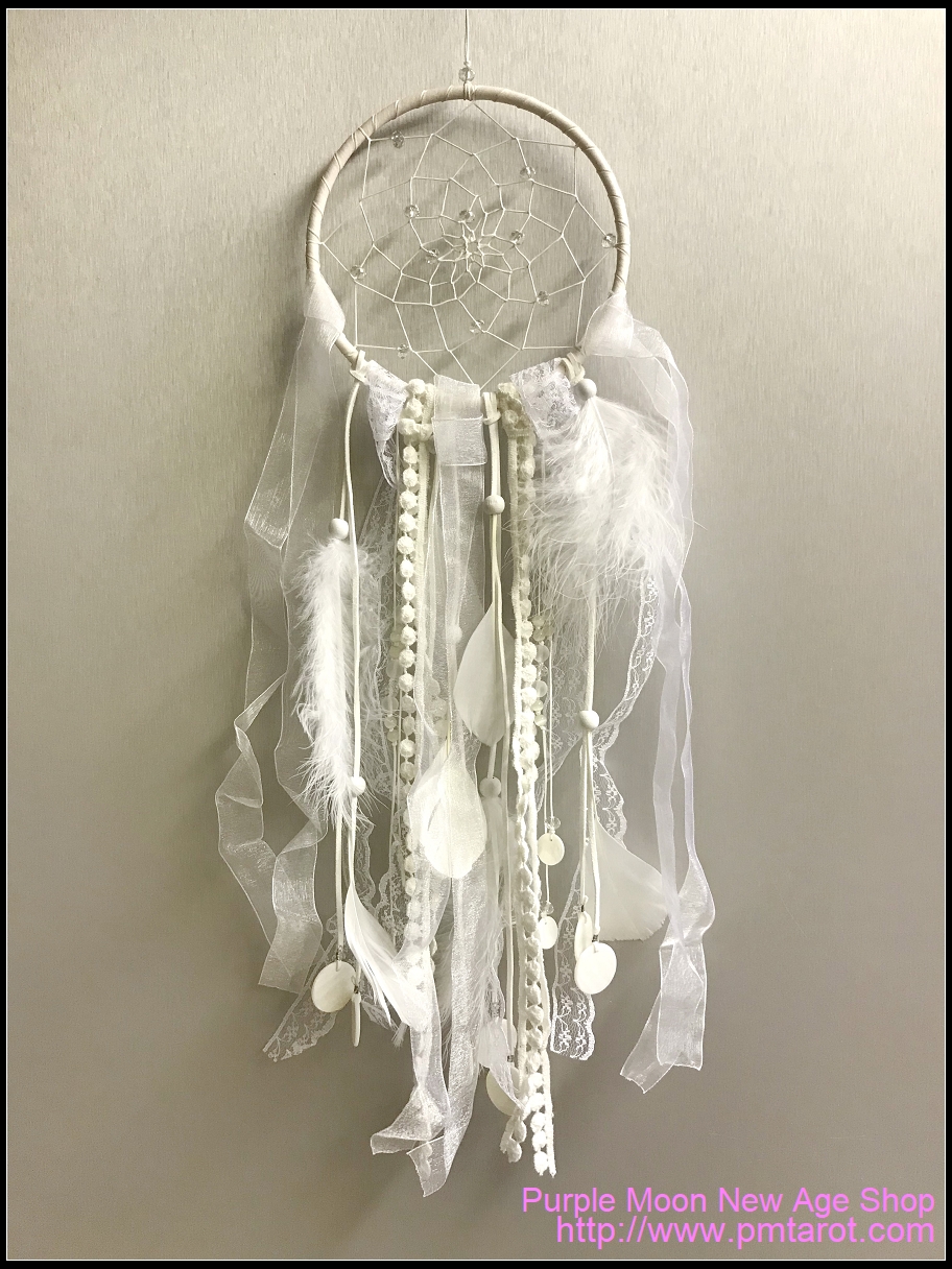 Simple dream catcher decorated with feathers and beads. These are often hung above cribs or in the windows and above doorways of the rooms where children sleep and sometime near the sleep area of adults with troubled sleep to catch the bad dreams and the spirits who send them within the web of the dream catcher.